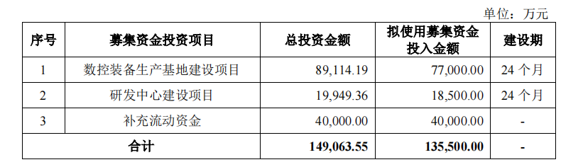 据乔锋智能IPO上市招股书走漏,公司这次IPO上市拟募资13.55亿元,分手用于数控装备出产基地成就时势、研发中心成就时势及补充流动资金。