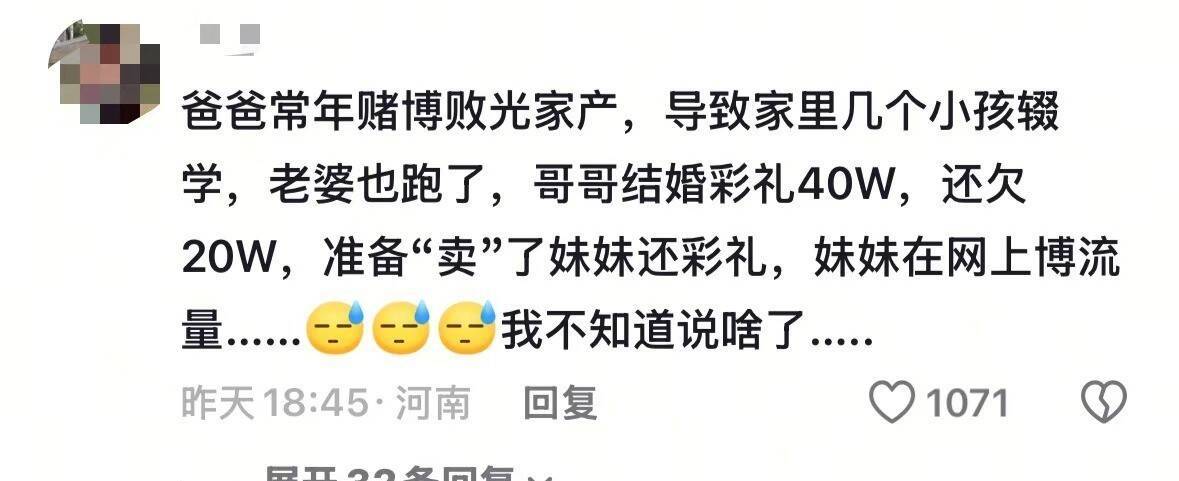 还有东谈主爆料,阿吉这依然不是第一次骗东谈主了,昨年就有别的团队帮过她们,服从东谈主家走了,她们又换个说法不息卖惨。说白了,阿吉等于把“父母双一火、姐姐带妹妹”的悲情东谈主设,当成了赢利的器具,专门应用别东谈主的温煦骗钱、骗帮扶。